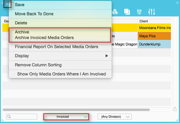 Select the option Archive Invoiced Media Orders.