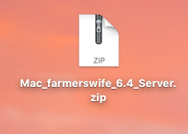 With a double click on the zipped fw Server package file, initiate the installation process by unzipping it. A progress bar will appear showing the decompression progress. After the completion of the decompression the new farmerswife Server app package will appear. Move it to your Applications folder.