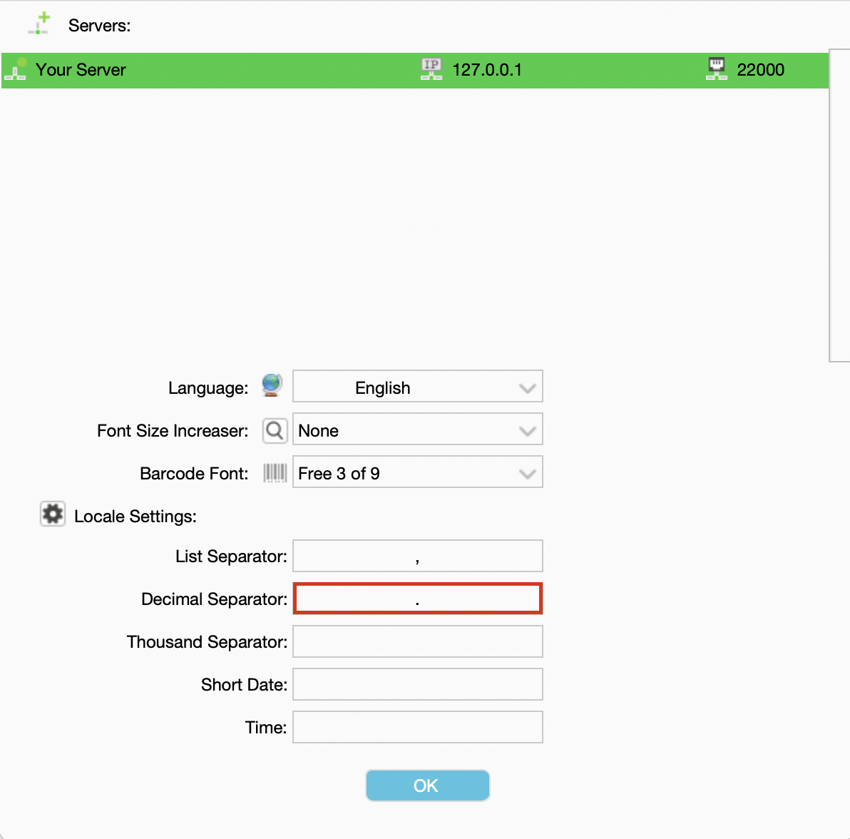 In order to change the Decimal separator in your report, you will need to change this in your client login settings: