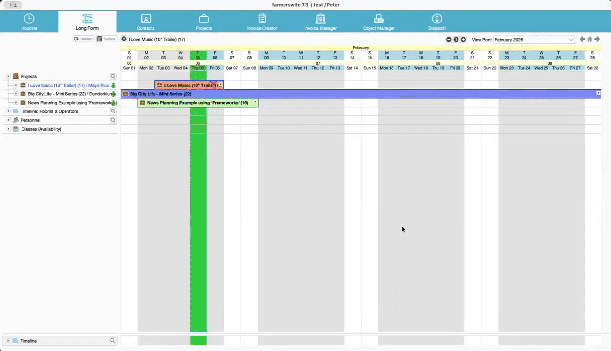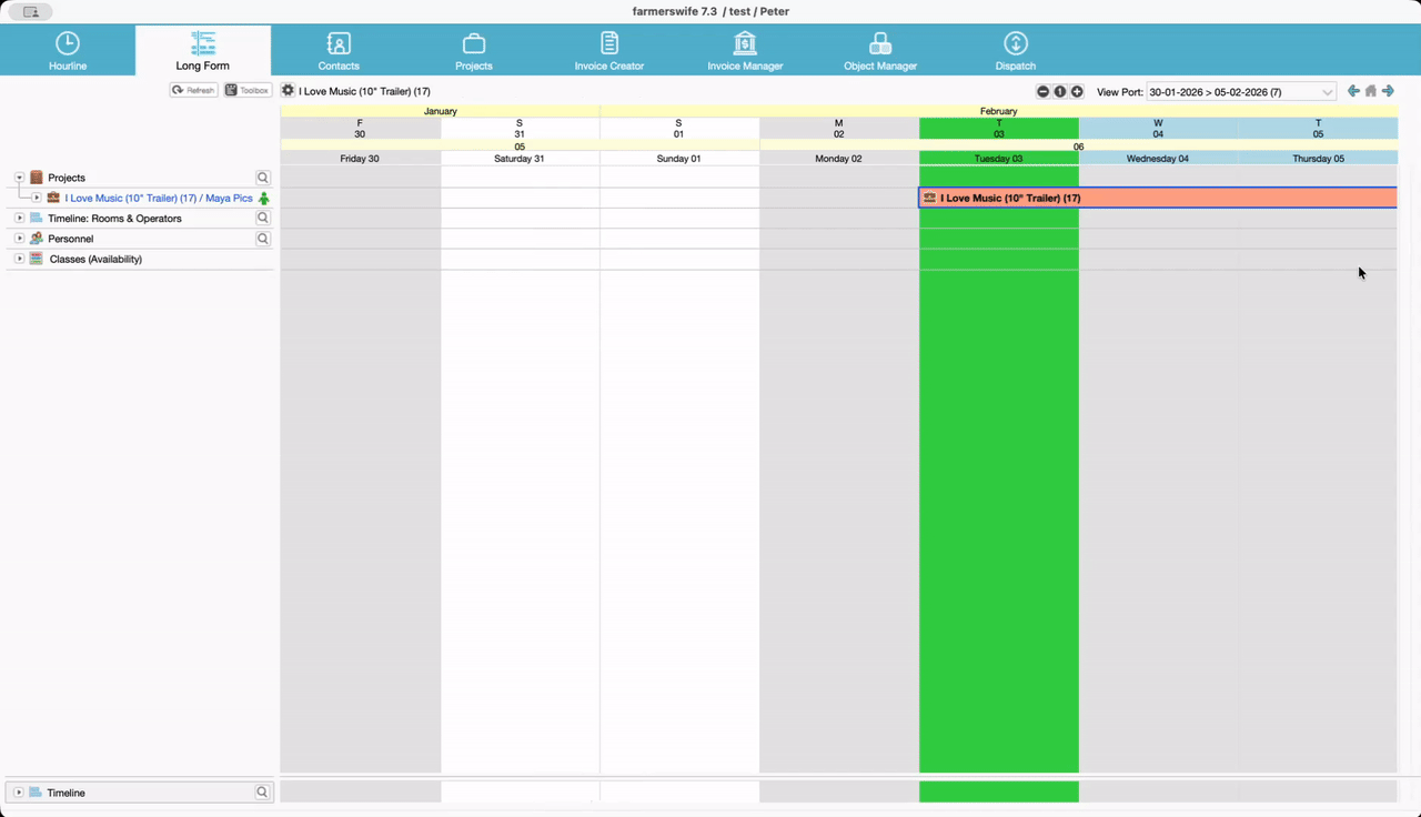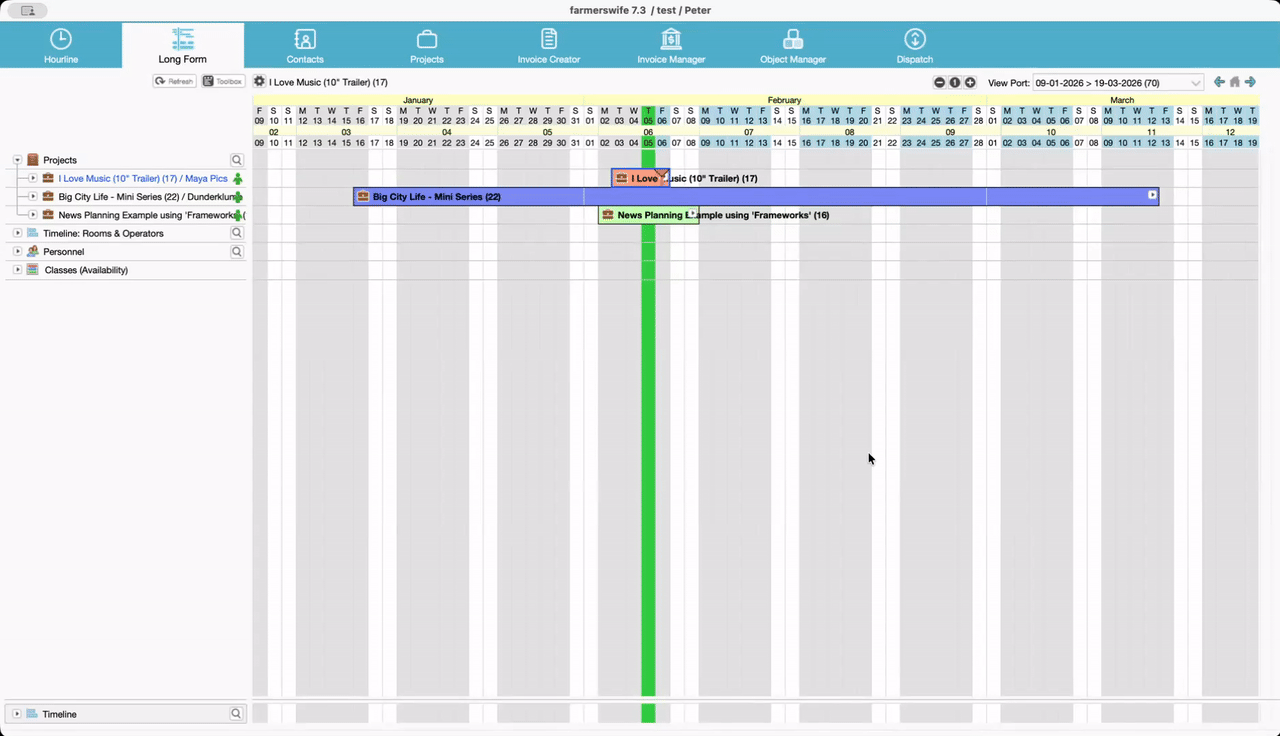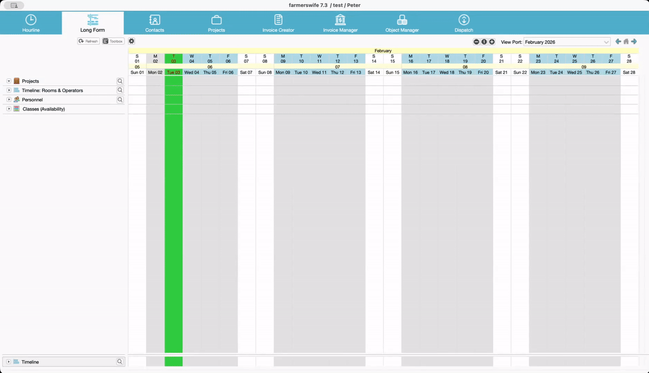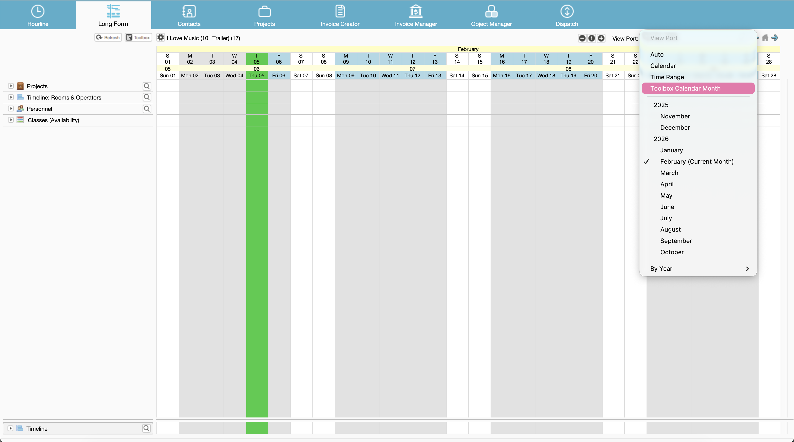 If Auto is selected the time frame will automatically adjust to the Projects that have been added to the Projects Tree. A specified number of days will be padded on each side of the Projects displayed. To set the number of padded days open the Toolbox > Settings > Display “Day Padding Before” and “Day Padding After”. If “Day Padding” for both before and after is 7 days the Long Form view will show 7 days before the Project start date and 7 days after the Project end date.