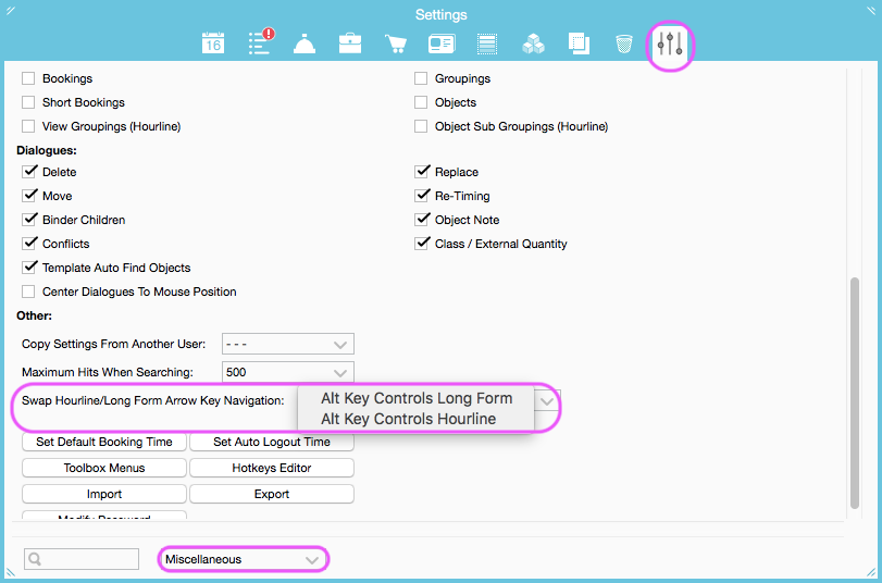 You can also move through the Long Form timeline using the keyboard. The default setting for the Long Form is to use the Alt key and the Arrow Keys and the Default for Hourline is to move only with the Arrow Keys.