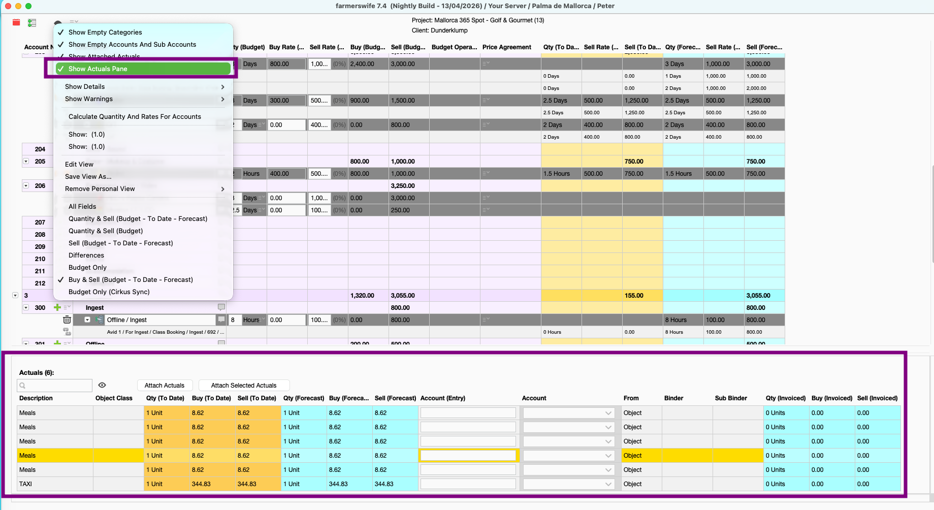 - Eye Menu - for configuring view settings within the Budgeting Module