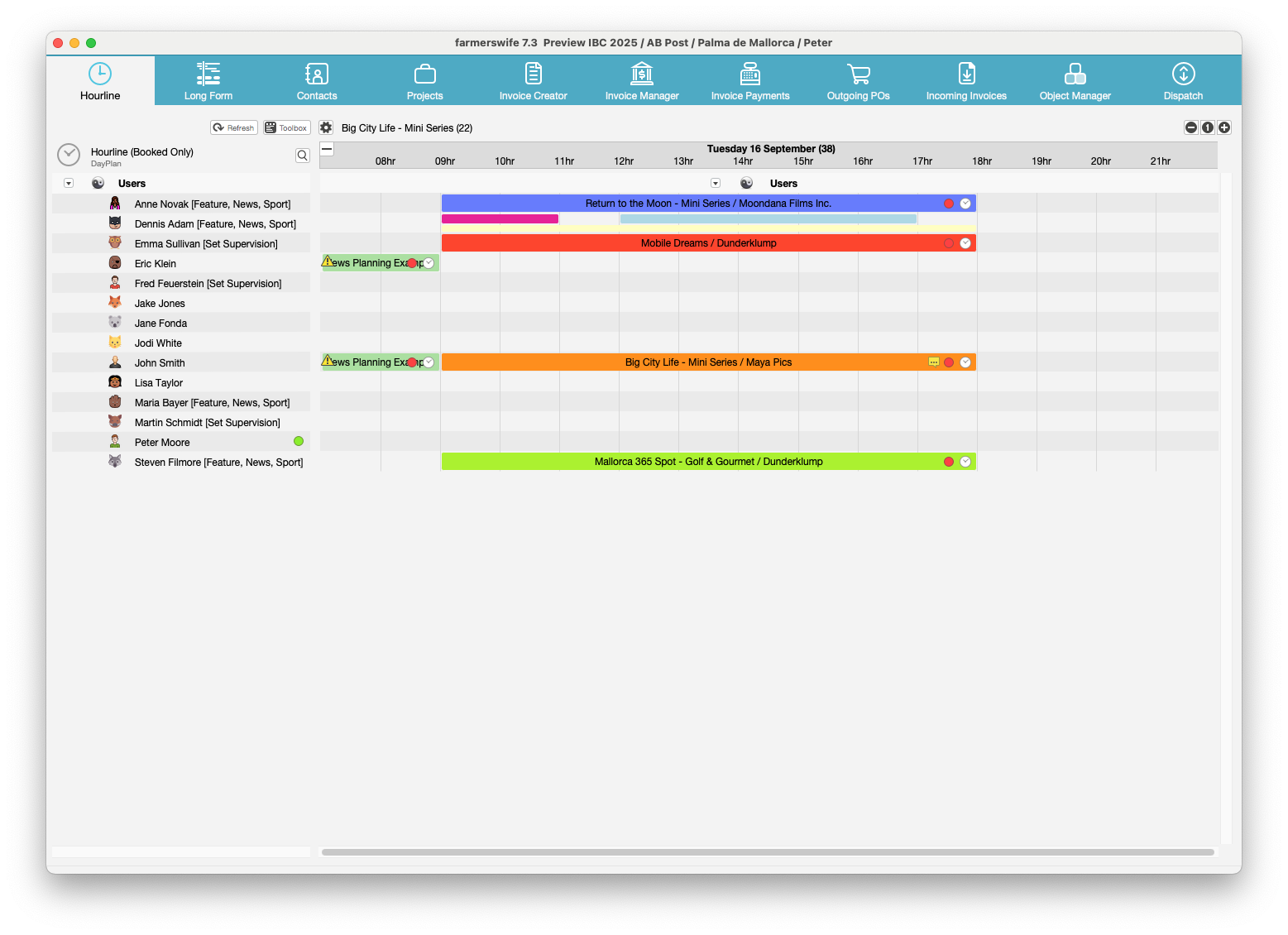 - This usually contains the staff you need to see and their bookings for the day. The view is structured in the same way as the "Day Plan" that you can run from the Hourline Menu.