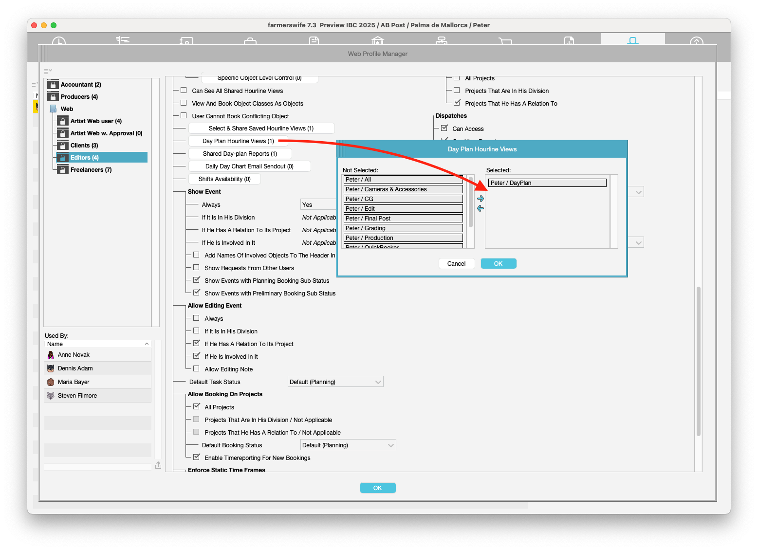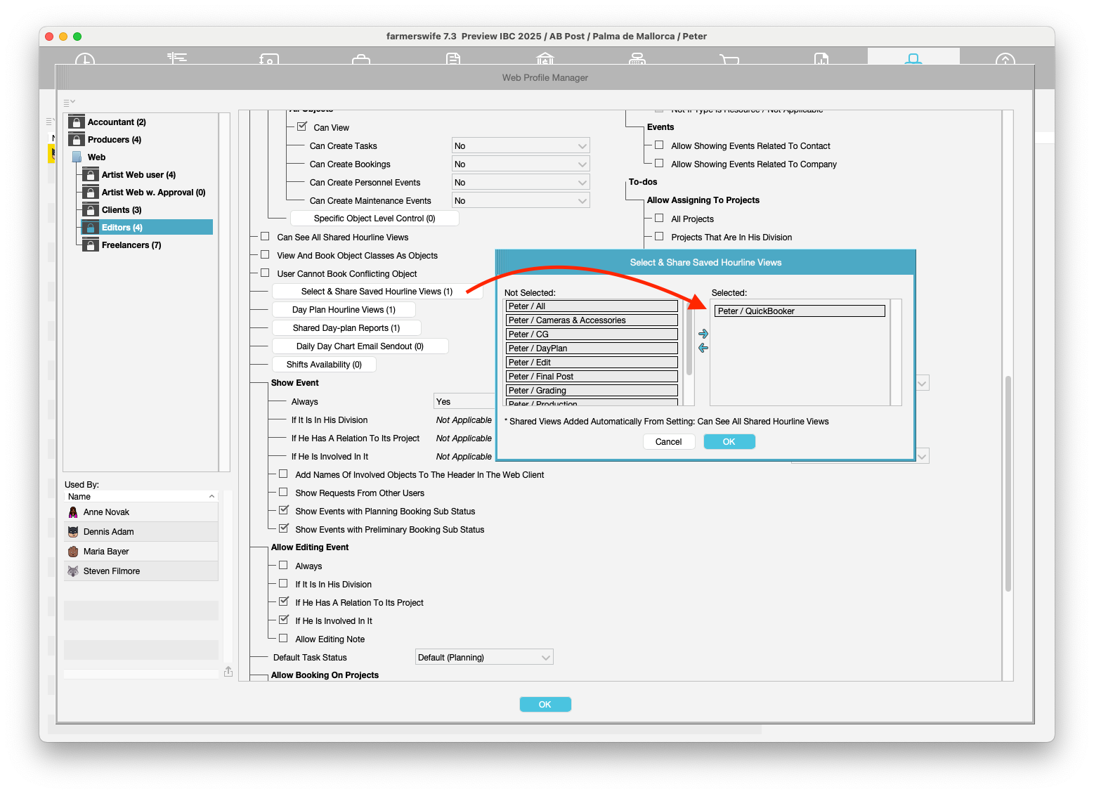 - Create and save an Hourline View called “QuickBooker” with objects you wish to allow quick-book on. Do not make it a shared view.