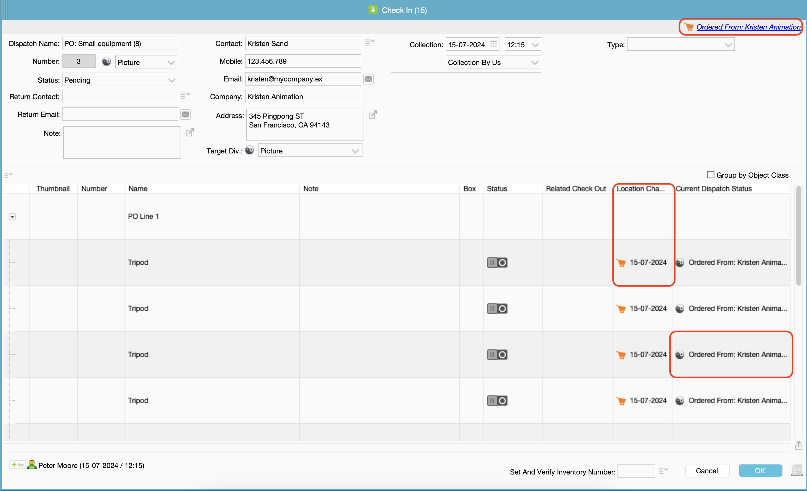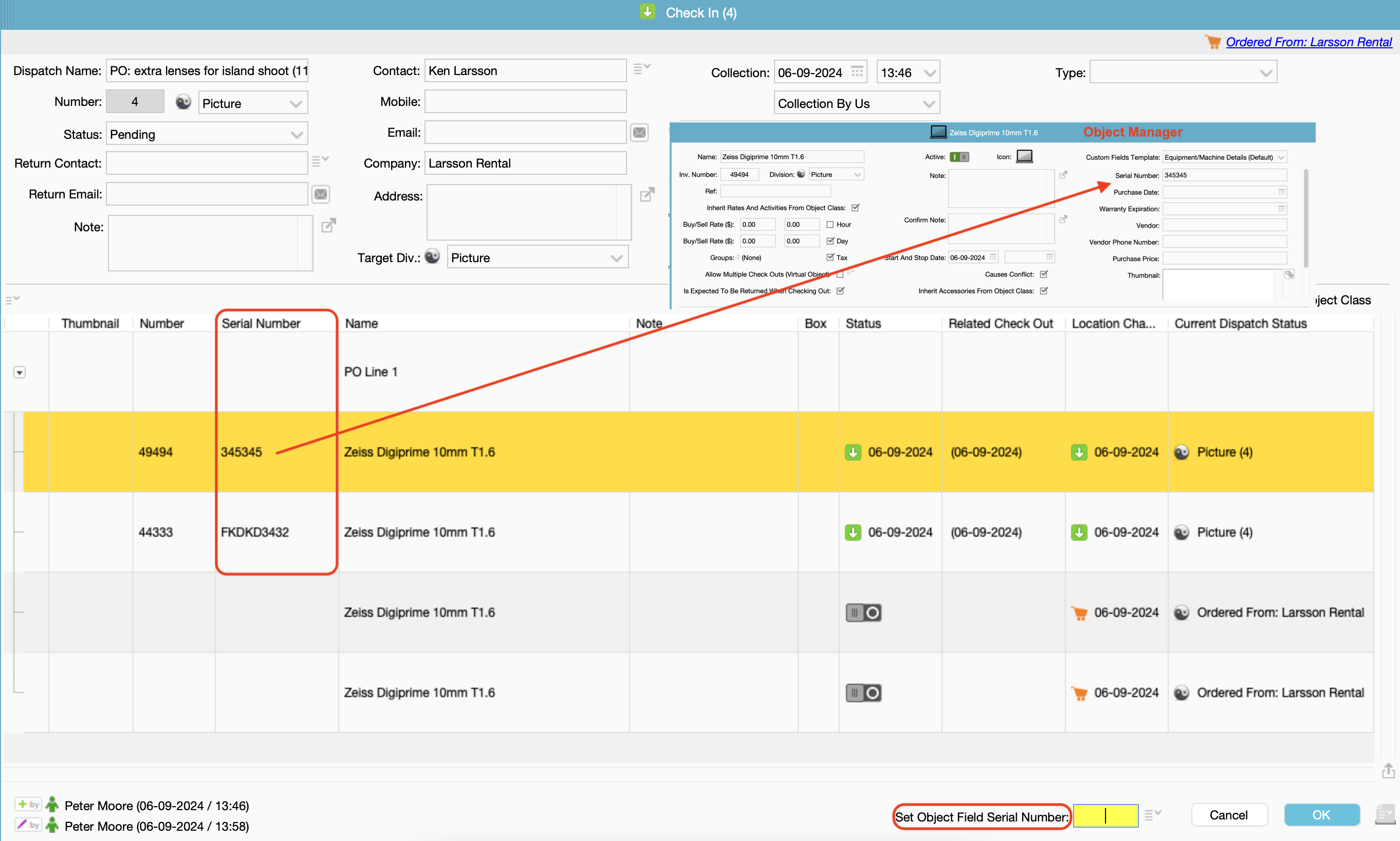 By double clicking on any Dispatch line, the Object window will open and you can adjust certain information directly from the Dispatch.