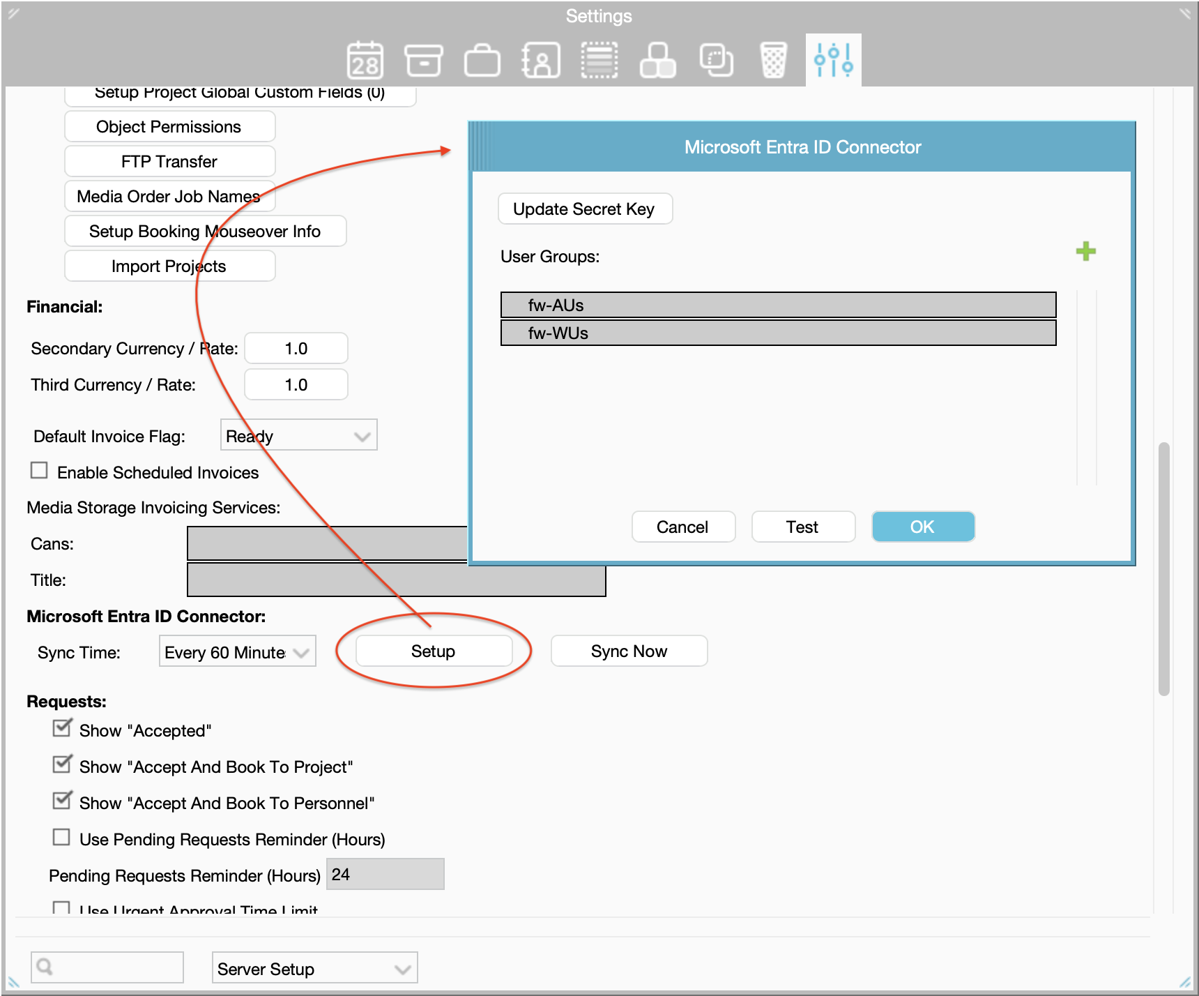 - fw Client app > Toolbox > Settings > Server Setup > Microsoft Entra ID Connector