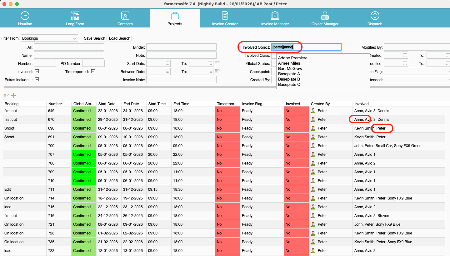 List all Bookings with Involved: Peter & Anne