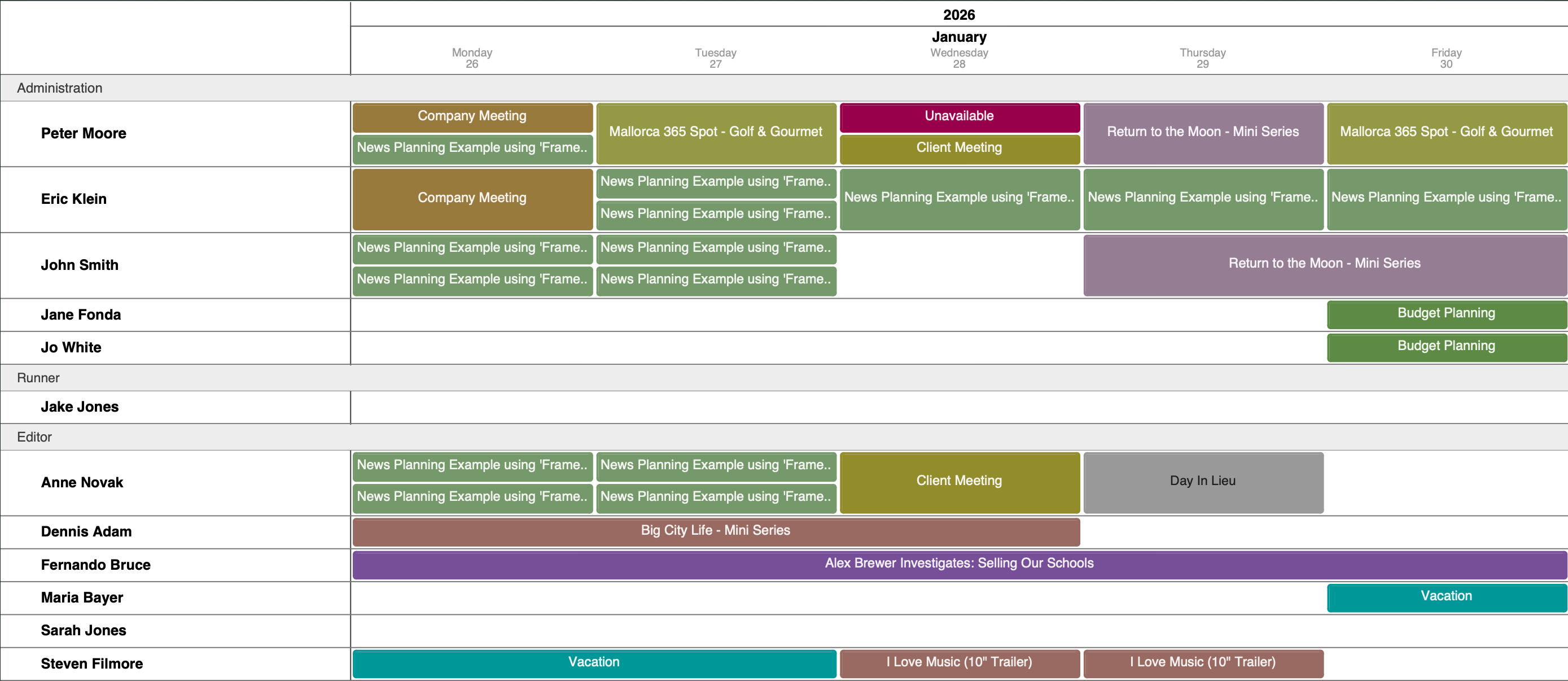 Resource Schedule PDF Example: